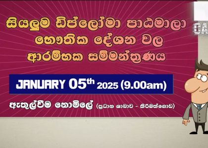 LPEC CAMPUS – වෘත්තීය අධ්යාපනයේ පෙර ගමන්කරු භෞතික දේශන ආරම්භය දිනය – ජනවාරි මස 5 වන දින වේලාව- උදෑසන 9.00 ට ස්ථානය