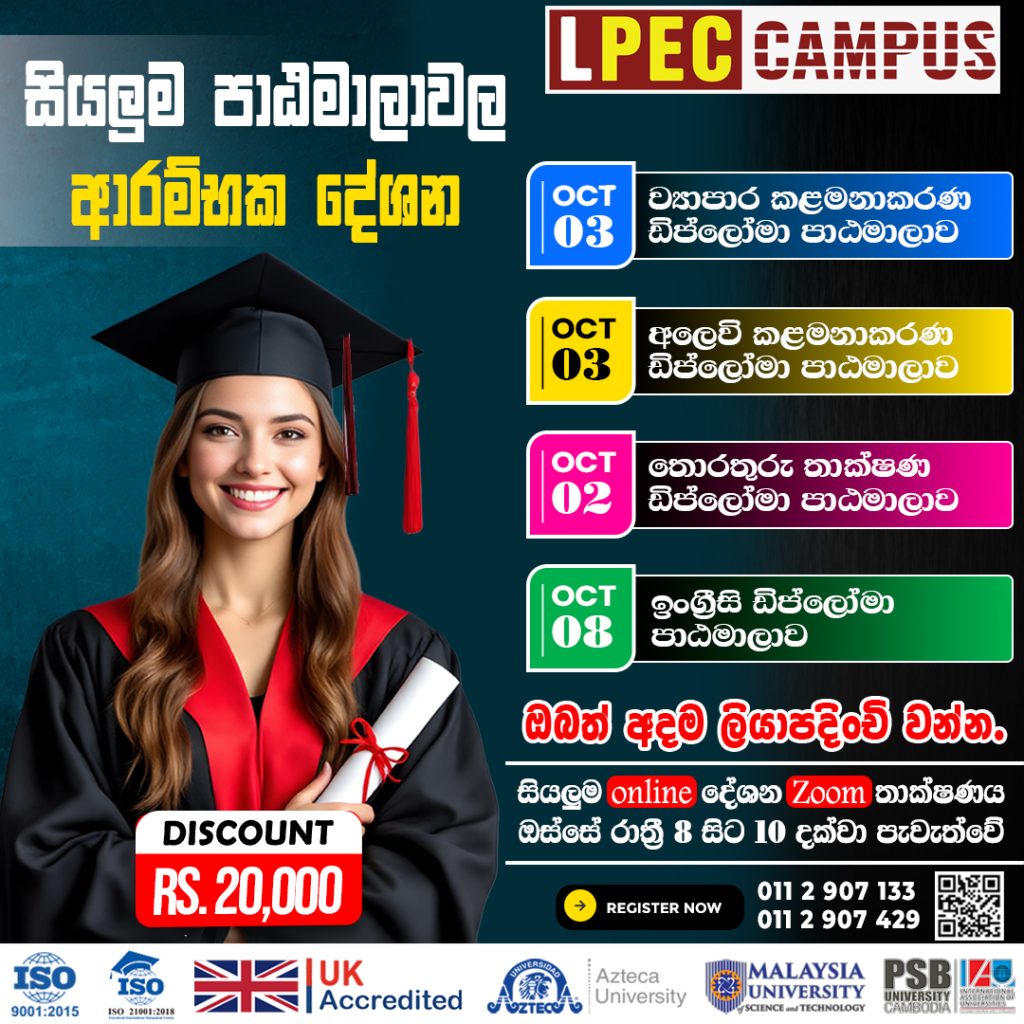 ඔබගේ වෘත්තීය අනාගතයට දැන්ම ආයෝජනයක් කරන්න. ඔබත් අදම Lpec Campus හි ලියාපදිංචි වන්න.