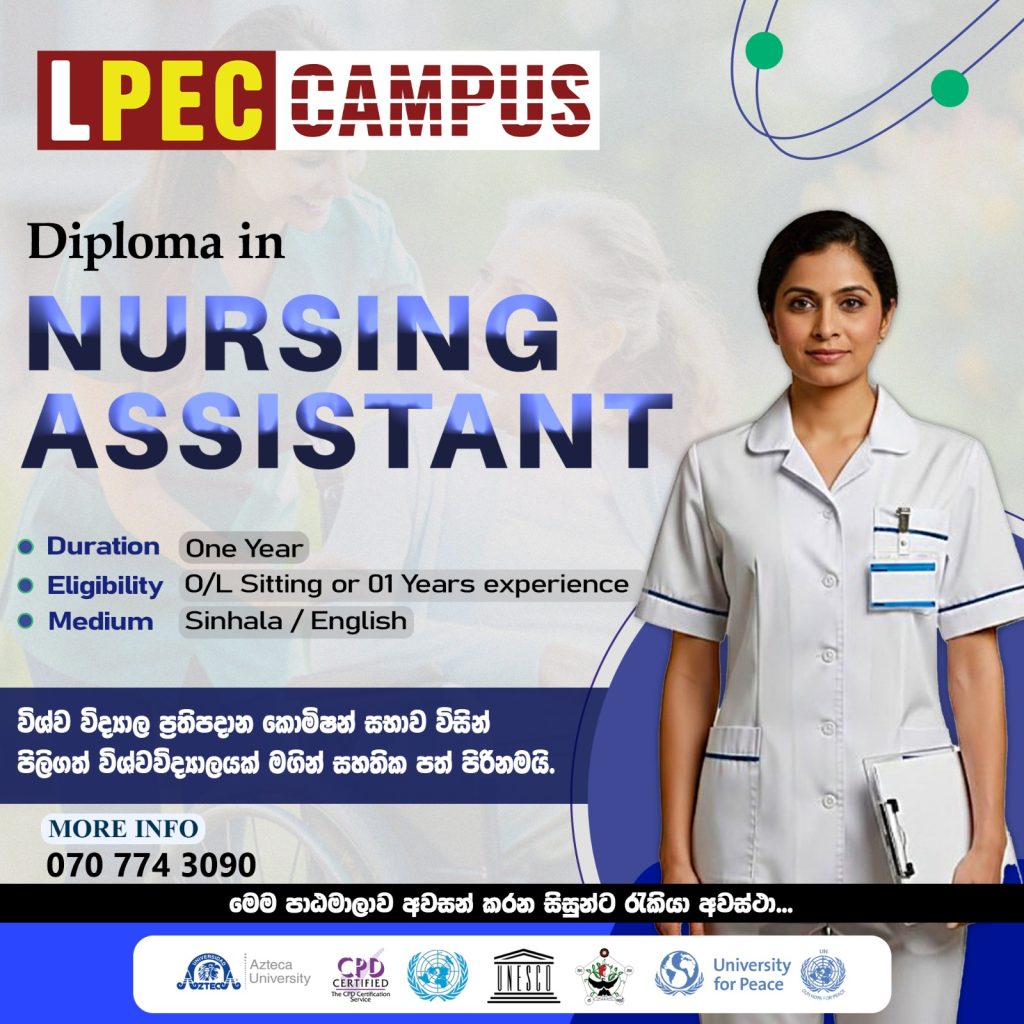 LPEC Campus හි Nursing Assistant Diploma පාඨමාලාවට ඇතුළත් වී, ඔබගේ පළමු දිනයෙන්ම care homes වල ප්රායෝගික ක්ලිනිකල් පුහුණුව ලබාගන්න.